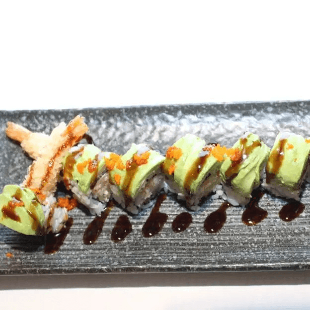 Shrimp tempura and lobster salad topped with avocado, masago and eel sauce
