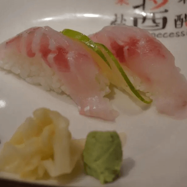 Hirame. Sushi: 2 pieces per order, sashimi: 3 pieces per order