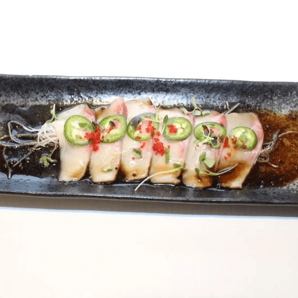 Thinly sliced yellowtail with jalapenos, scallions and masago, with chef's yuzu wasabi sauce