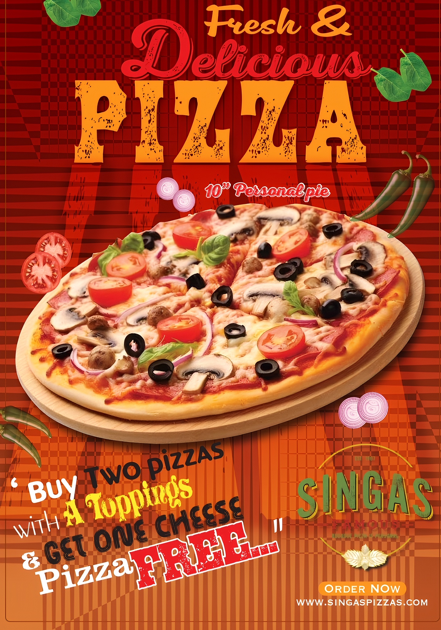Singas Famous red sauce topped with shredded cheese, Pepperoni, Sweet Italian Sausage, Black Olive, Mushrooms, Onion, Green Pepper.