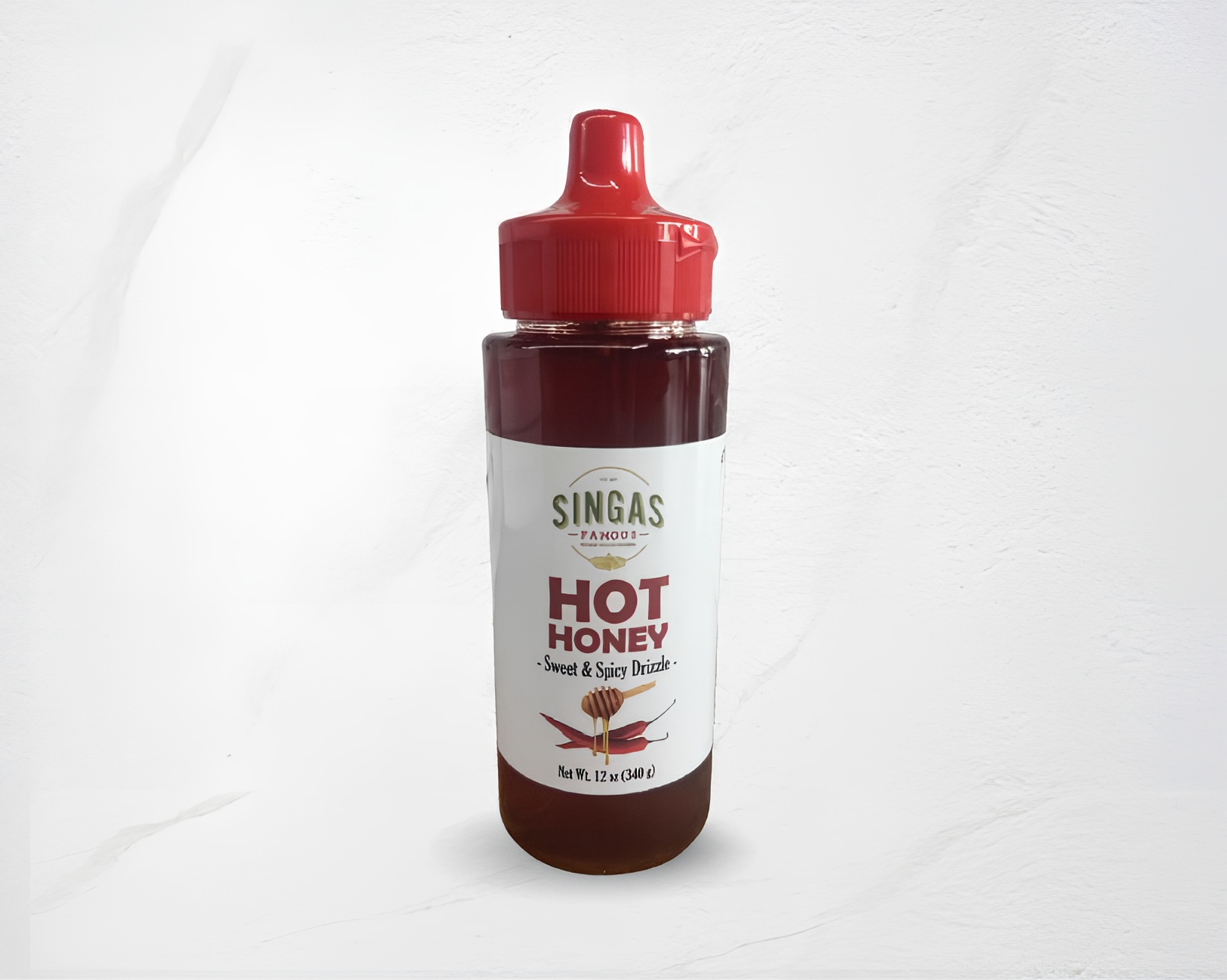 Singas Famous red sauce topped with shredded cheese, Crispy Pepperoni & drizzled W/ Hot Honey Drizzle.